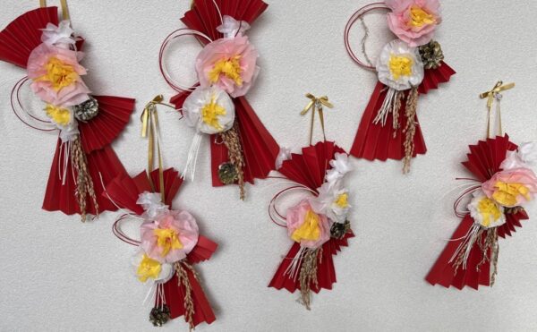 今年の年末年始は9連休ですね。 こっとんの生活介護の利用者さん お持ち帰りで迎春の壁飾りを作りました。 見よう見まねで職員に教わりながら松ぼっくりを好きな場所に貼りつけたりして仕上げました。